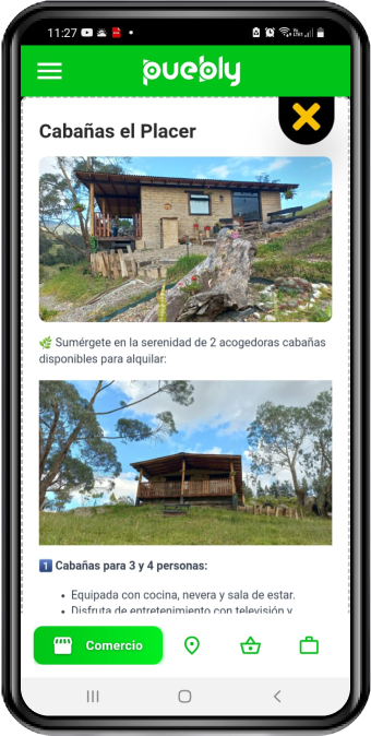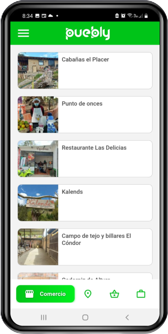 Ingresar a las secciones de cada municipio en Puebly posibilita la colaboración de los usuarios para el fortalecimiento del comercio y turismo rural.